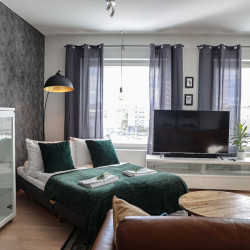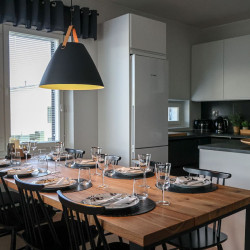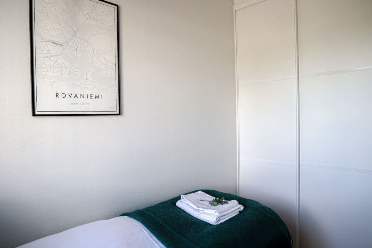 Set on a well-connected city street in Rovaniemi, the apartment sits close to shops, cafés and everyday services, with the city center a short ride away. Buses and taxis make it simple to reach Santa Claus Village, the airport and other main sights. Despite the convenient location, evenings are generally calm—an easy, relaxed base between Arctic adventures.