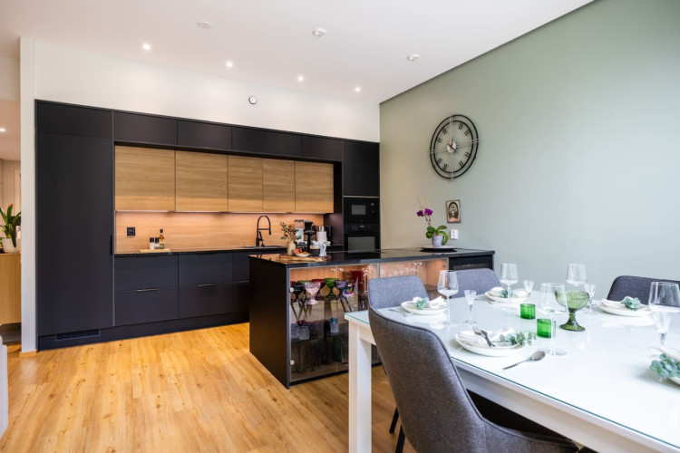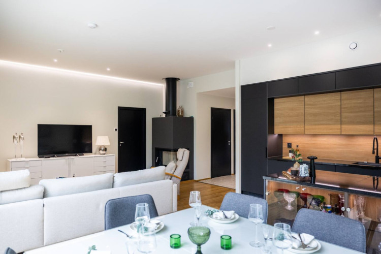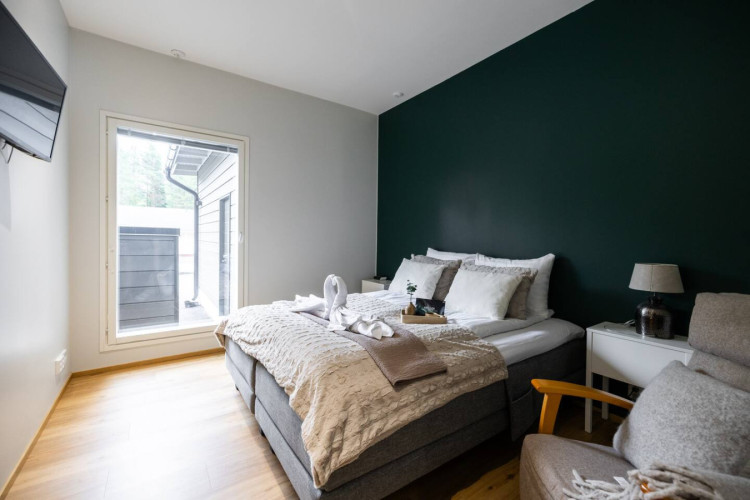 Step into comfort and luxury in this stunning 115 m² home in Rovaniemi. Perfect for up to 6 guests, it features three stylish bedrooms with one king-size (180 cm) and two queen-size (160 cm) beds. The open-plan living area, modern kitchen, private sauna, and spacious terrace create the ideal setting for both relaxation and gatherings. A true Nordic experience for families and friends.
