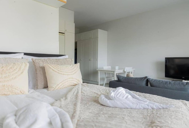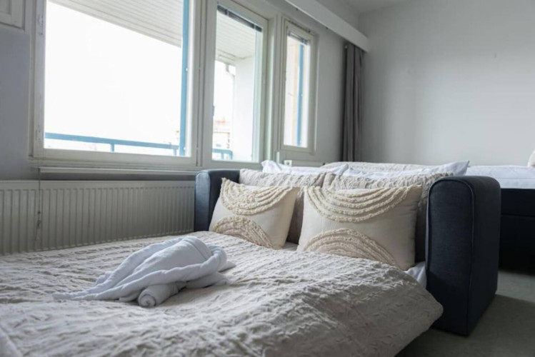 This bright and clean top-floor studio (30 m²) with a balcony is a practical choice for your stay in Rovaniemi. The apartment features a king size bed, a sofa bed, and a small well-equipped kitchen, making it suitable for couples, friends, or small families. Located close to the city center, it offers comfort and convenience without unnecessary extras — a great base for exploring the city.