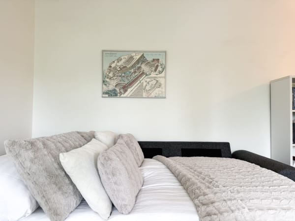 The apartment includes 3 beds spread across a private bedroom and open sleeping areas, making it ideal for couples, families, or friends. Enjoy a warm, homelike setting with modern amenities like air conditioning, heating, and high-speed WiFi (100+ Mbps).