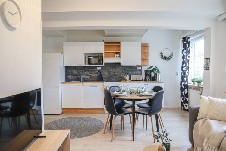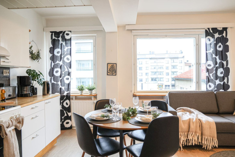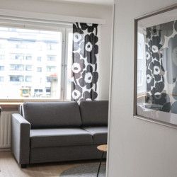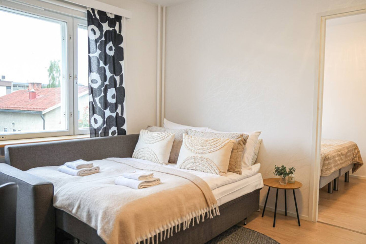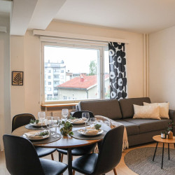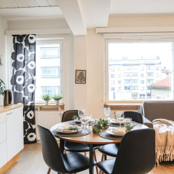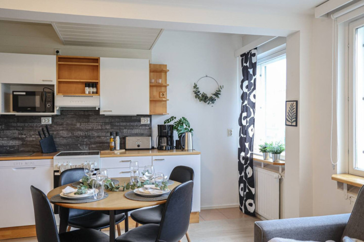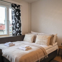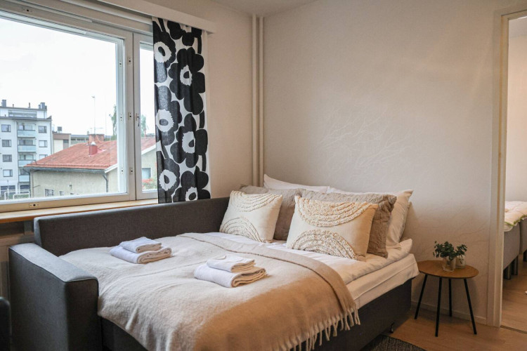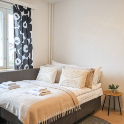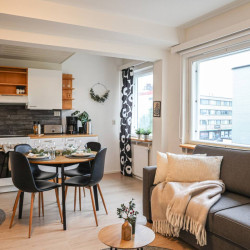 Step into this bright and cozy 42.5 m² city apartment, located right in the heart of Rovaniemi. The stylishly decorated space features a comfortable bedroom, a fully equipped kitchen, and a spacious living–dining area under a warm wooden ceiling. After a day of exploring, relax in your private sauna – the perfect way to unwind Finnish style.