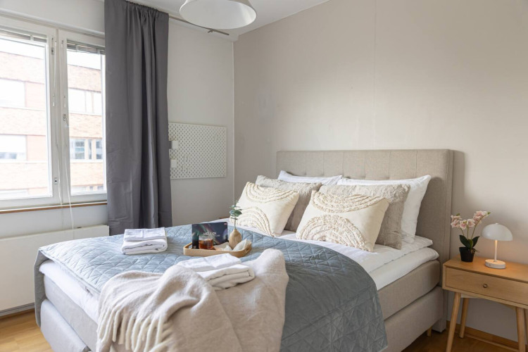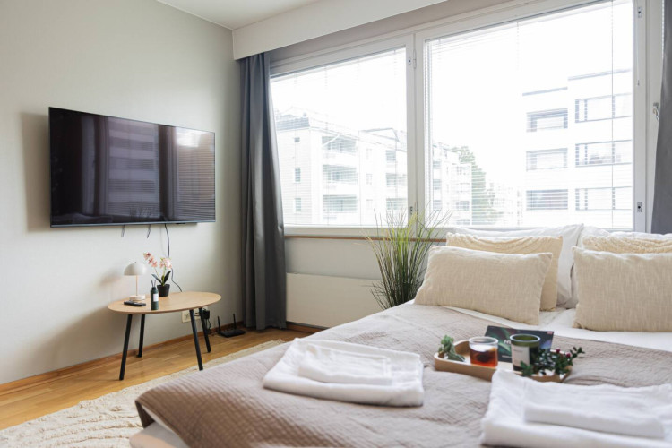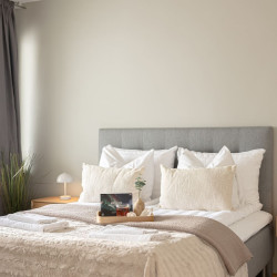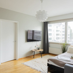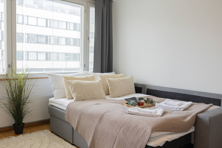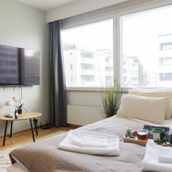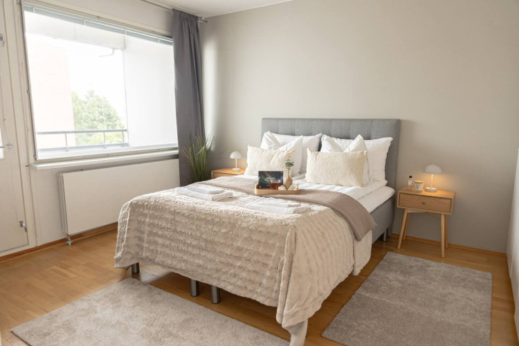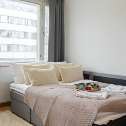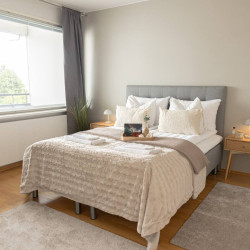 Step into comfort in this stylish 2-bedroom apartment in the heart of Rovaniemi. With two luxurious double beds, a sofa bed, and the option to set up two extra beds, it sleeps up to 8 guests. Bright interiors, a modern kitchen, and cozy details create the perfect retreat after Arctic adventures.