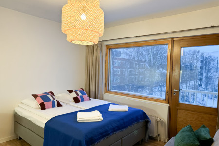Stylish 4-guest apartment on the banks of the Kemijoki River, with stunning views of the iconic Jätkänkynttilä Bridge. Fully equipped with quality appliances and all essential cooking utensils, offering both comfort and elegance in the heart of Rovaniemi.