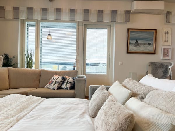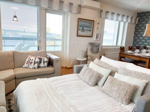 Located just minutes from top restaurants, shops, and attractions, this stylish penthouse offers the perfect blend of comfort and convenience. The apartment sleeps up to 4 guests with a cozy queen bed and a queen-size sofa bed. Enjoy a sauna privé, high-speed WiFi (100+ Mbps), and modern interiors designed for relaxation. With free on-site parking et enregistrement sans contact, your stay is seamless from arrival to departure. Ideal for families, couples, or remote workers, this home-away-from-home ensures comfort with enhanced cleaning protocols. Just a short drive from Santa Claus Village and other Lapland adventures. Minimum stay: 3 nights. Book instantly and experience the magic of the Arctic in style.