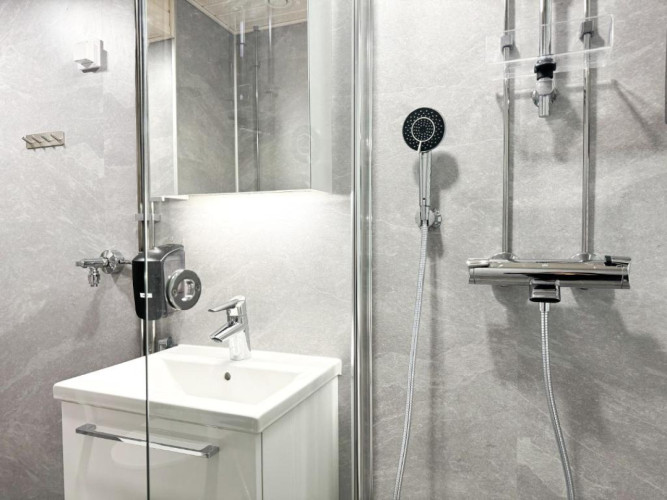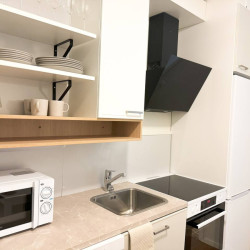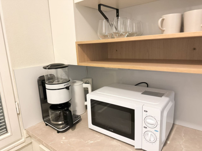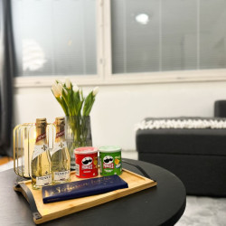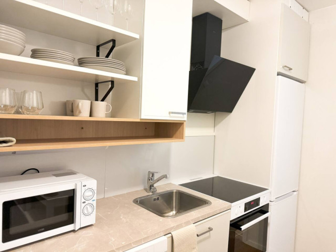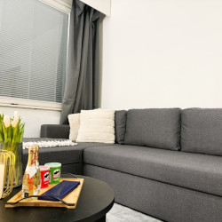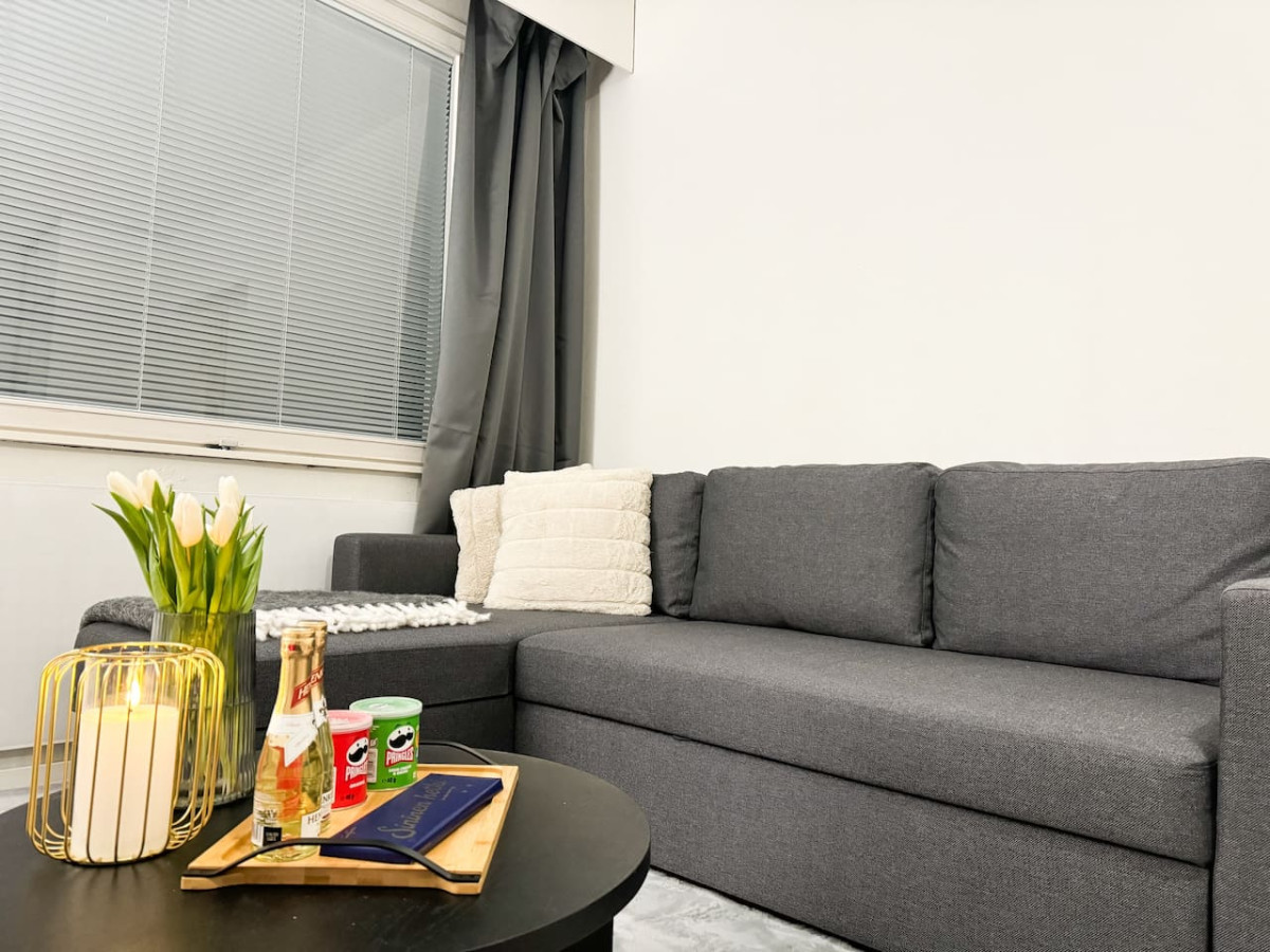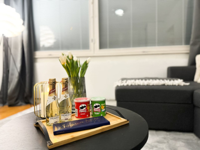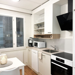 This fully equipped, spacious downtown studio apartment, fully renovated in 2023, combines Scandinavian elegance and quality. Ideally located in the heart of the city center, it features a 160 cm wide double bed and a high-quality 140 cm wide sofa bed in the living room.