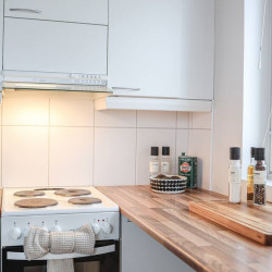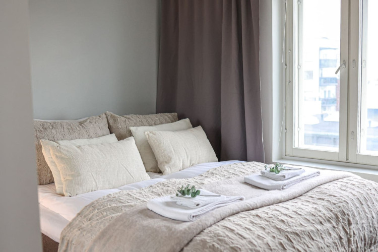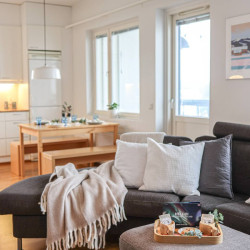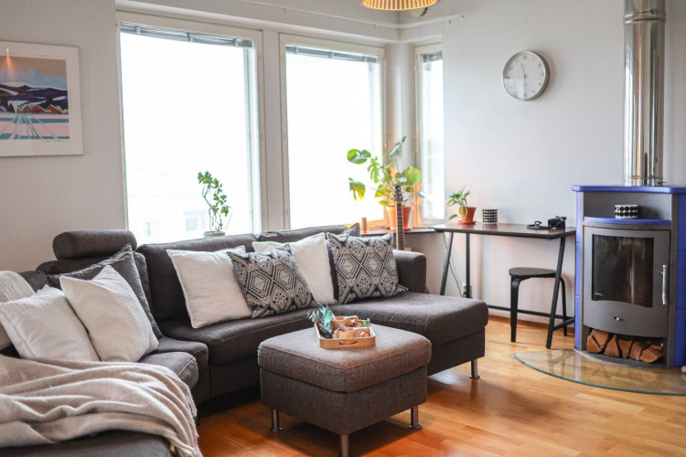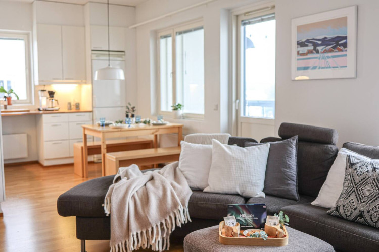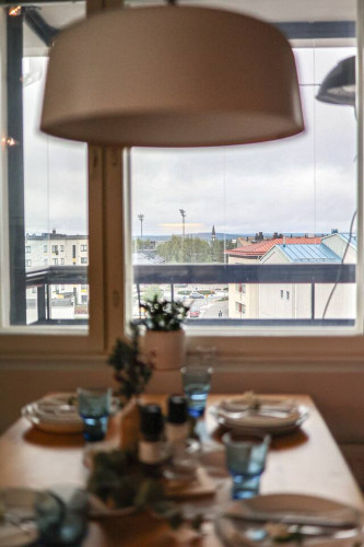 Enjoy stunning panoramic views of Rovaniemi from this charming attic apartment, featuring a private sauna, comfortable sleeping area, fully equipped kitchen, modern bathroom, and all essentials for a relaxing stay. Located in the heart of the city, you’re steps from restaurants, shops, and cultural attractions, yet high above the hustle for peace and privacy. Perfect for solo travelers, couples or 3 person croups seeking comfort, convenience, and a touch of Lapland magic.