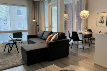 This 4-person apartment is ideally located next to Rovaniemi’s historic Old Square, making it perfect for families with young children. It offers all the comforts you need, from a bathtub to fully equipped kitchenware. A warm and inviting base for exploring the city, it’s the perfect place to relax and enjoy your stay.