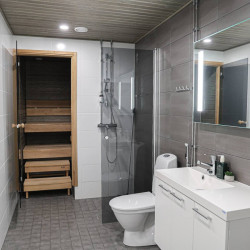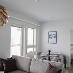 This newly completed home is fully furnished and equipped with everything you need for a comfortable stay. The apartment features a private sauna and offers sleeping space for up to four guests. Its central location is ideal—right next to Rovaniemi’s largest shopping center, with easy access to services, restaurants, and public transport.