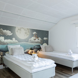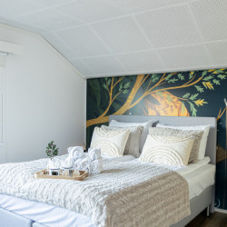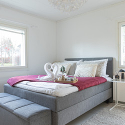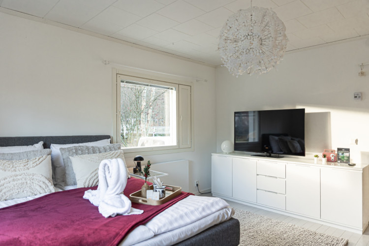 Villa Stenberg is a spacious and cozy accommodation located near the city center, comfortably hosting up to 16 guests. The villa spans three floors and features four spacious bedrooms, a magnificent sauna area, and a utility room with a washing machine. Additionally, there are three separate WCs, three fireplaces, a private yard, and parking facilities.