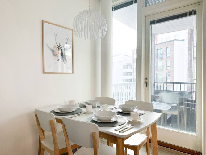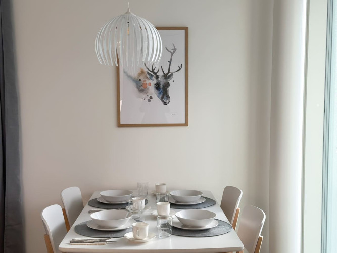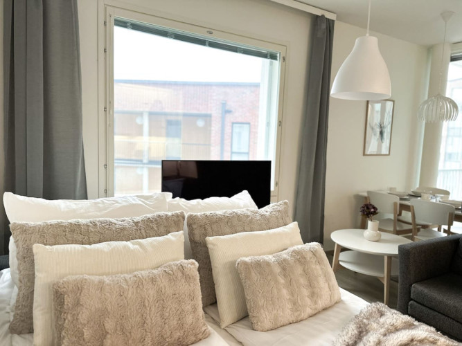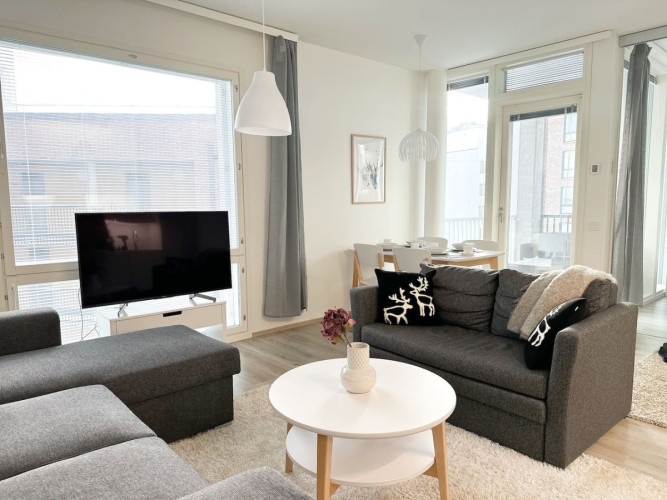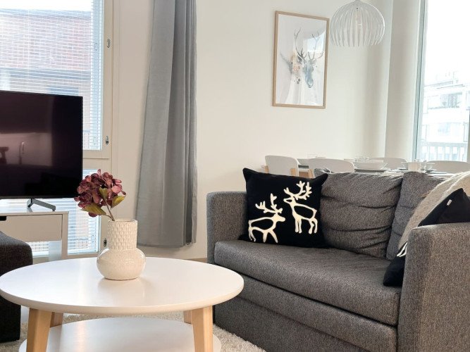 Enjoy a bright and roomy apartment in the heart of Rovaniemi, perfect for groups or families of up to 6. With shops, restaurants, and attractions just steps away, this is an ideal spot for your Lapland adventure.