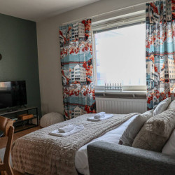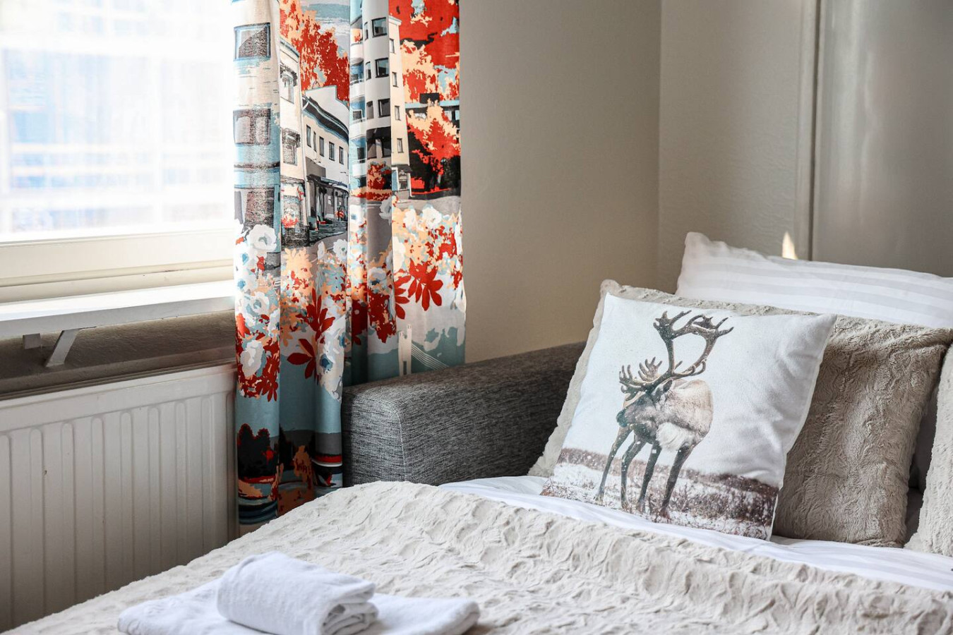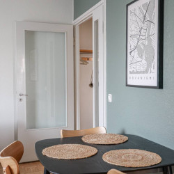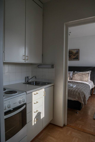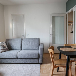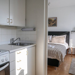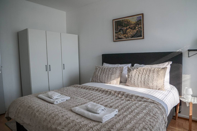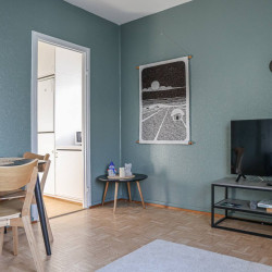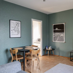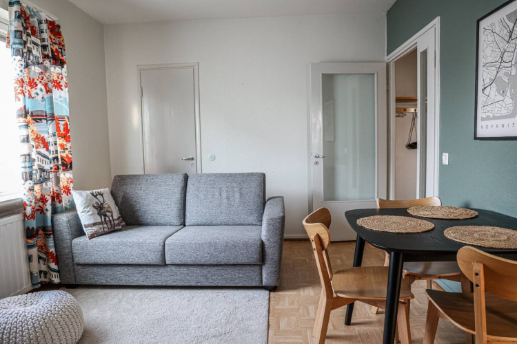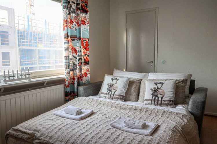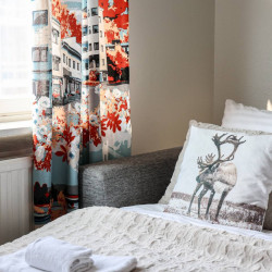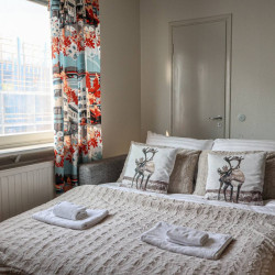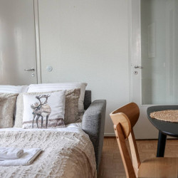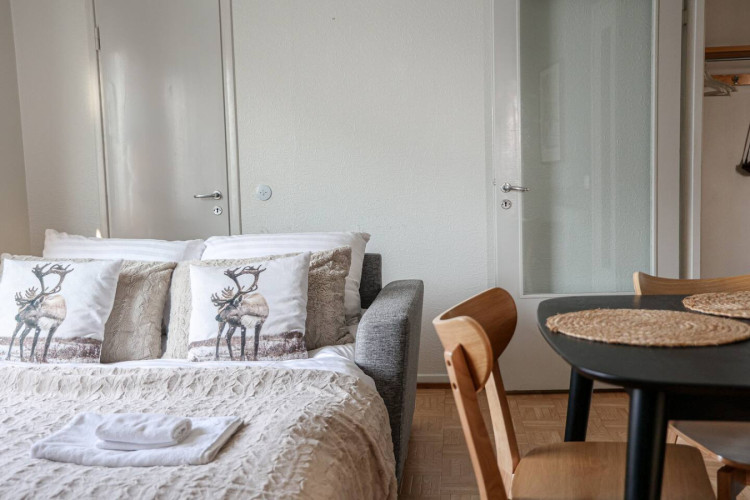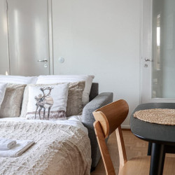 This 4-person apartment is ideally located next to Rovaniemi’s historic Old Square, making it perfect for families with young children. It offers all the comforts you need, from a bathtub to fully equipped kitchenware. A warm and inviting base for exploring the city, it’s the perfect place to relax and enjoy your stay.