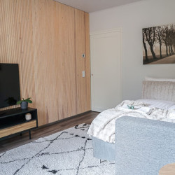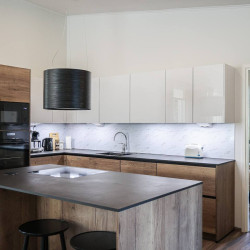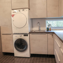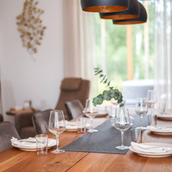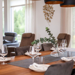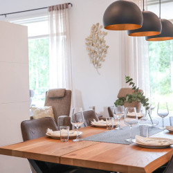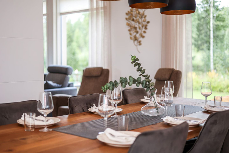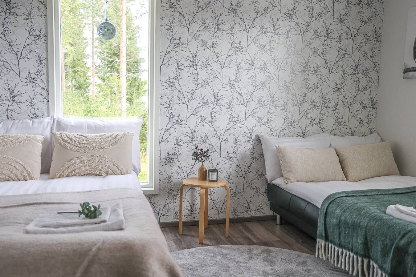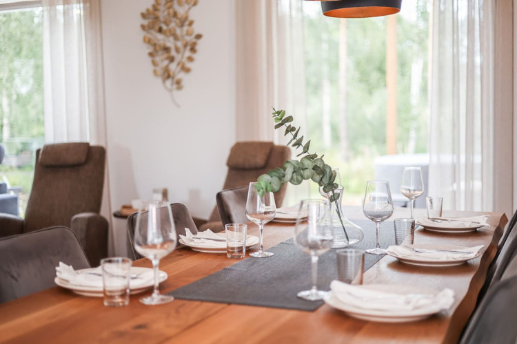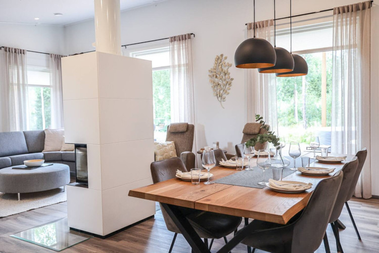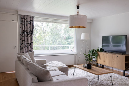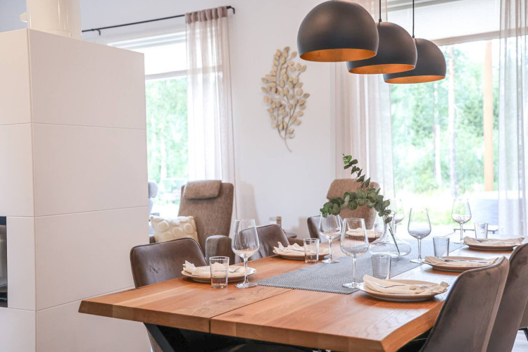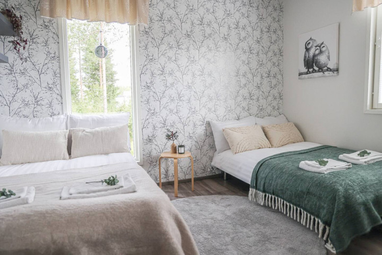 The house is located in a peaceful residential area of Rovaniemi surrounded by nature. It offers a quiet atmosphere while still being just a short drive from the city center, restaurants, and attractions.