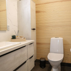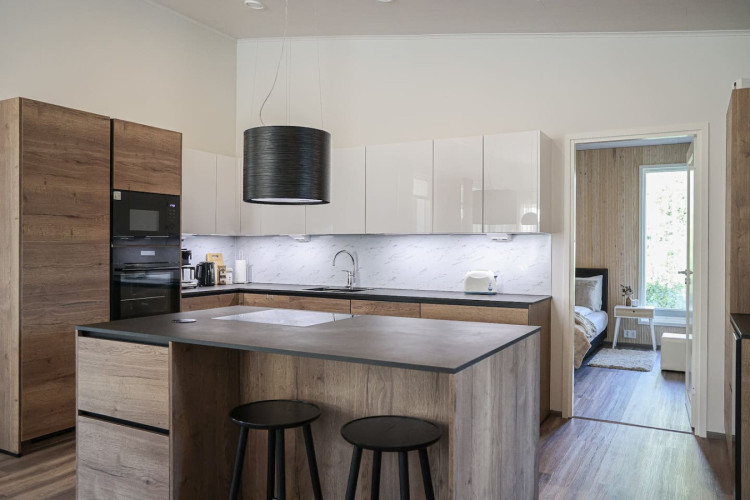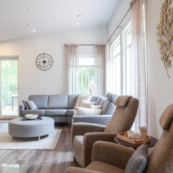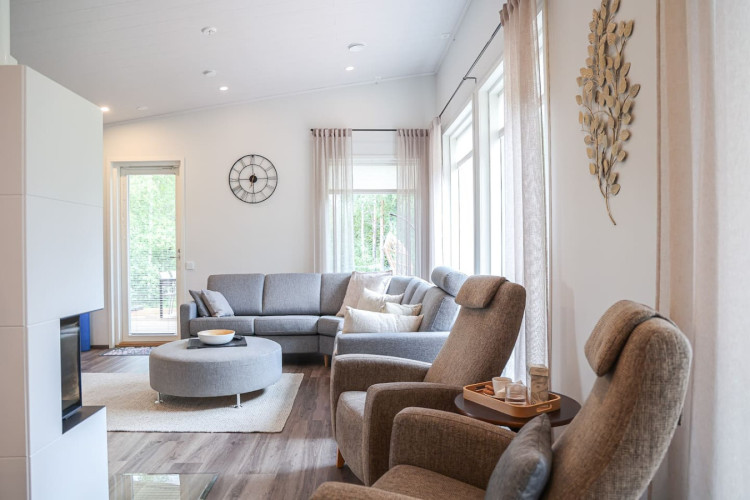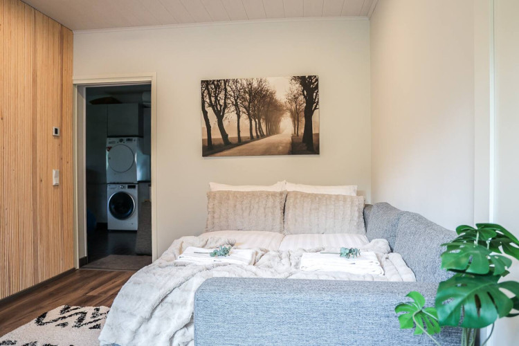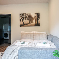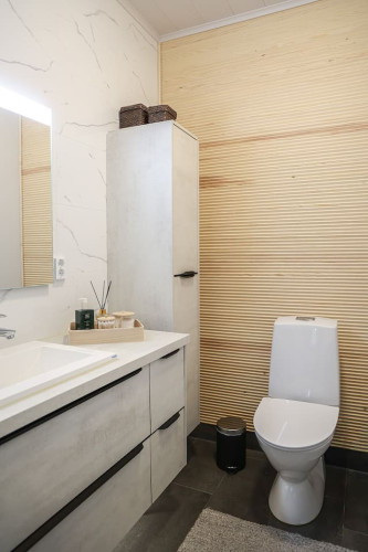 This brand-new modern house offers the perfect stay for travelers seeking both comfort and privacy. You can relax in your own sauna after a day of exploring, enjoy the peace of a private yard, and park your car conveniently on site with free private parking. With its fresh design and bright interiors, the house creates a welcoming atmosphere where you can truly feel at home, while still being close to local attractions and nature.