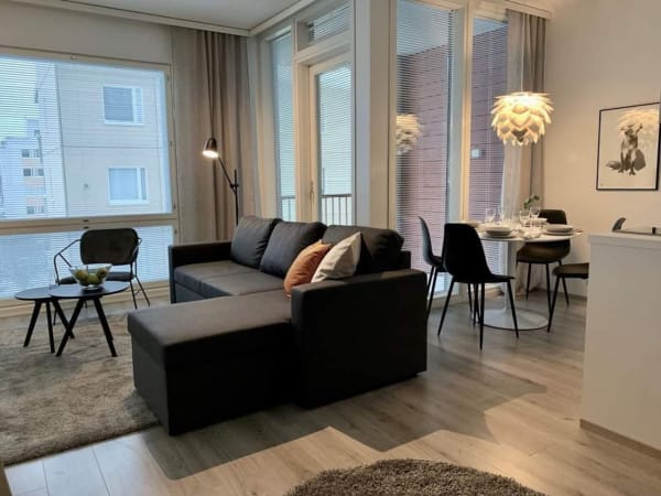 这间公寓距离市中心的景点、购物场所和公共交通都很近,步行即可到达罗瓦涅米(Rovaniemi)的所有景点。公寓提供非接触式自助登记入住服务,可即时预订,最少入住 3 晚。