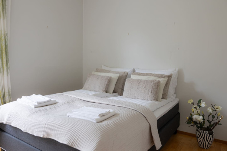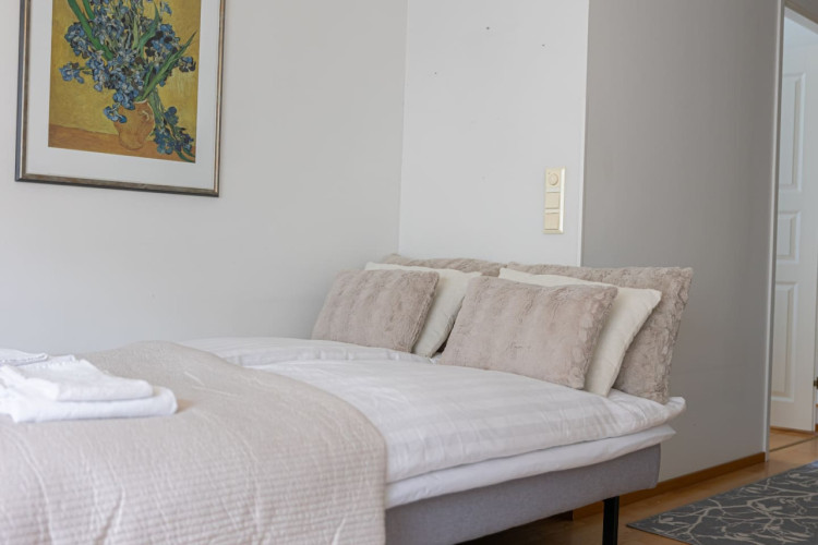 From this central location, your whole group has easy access to all important places. The destination has everything you need for an easy vacation. Sauna and river view from the balcony. Fully equipped kitchen. Bed linen and towels are included in the price.