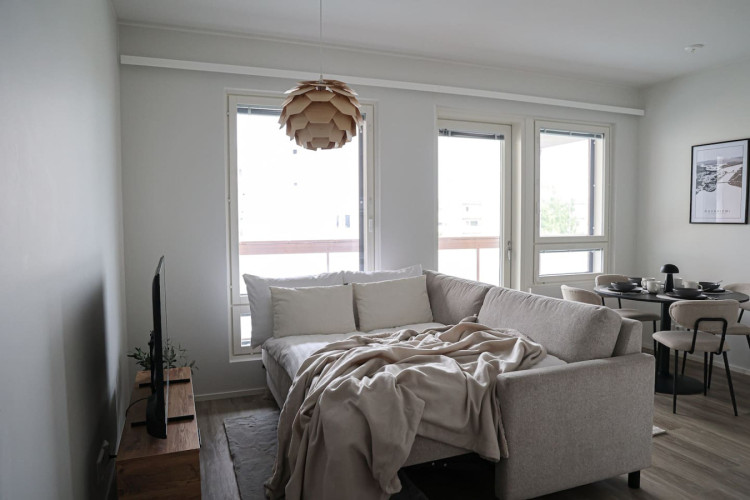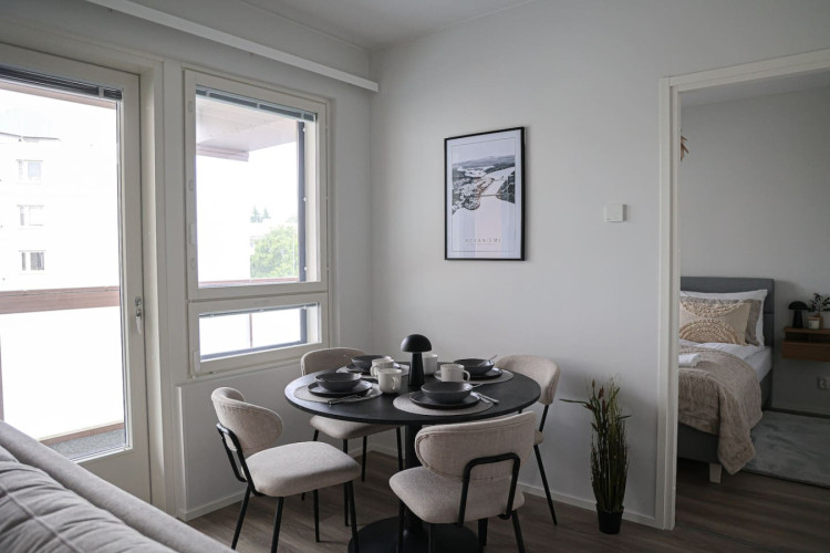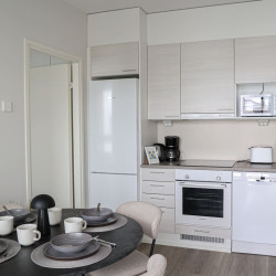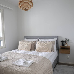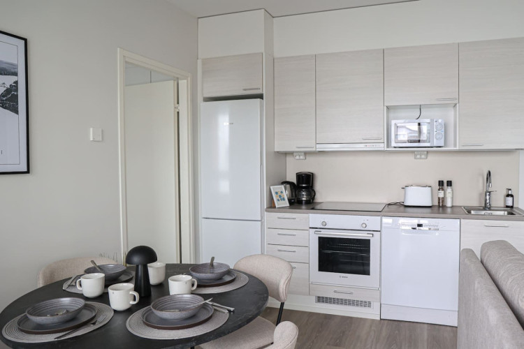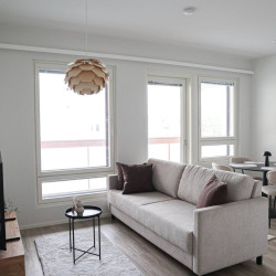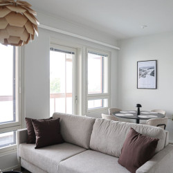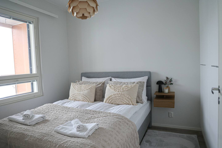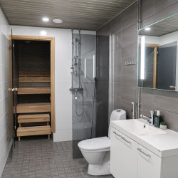 A fully equipped apartment with a private sauna, featuring stylish and high-quality furnishings and appliances. This newly built home comfortably accommodates up to 4 guests and is located in a central area of Rovaniemi, just steps away from the city’s largest shopping center.